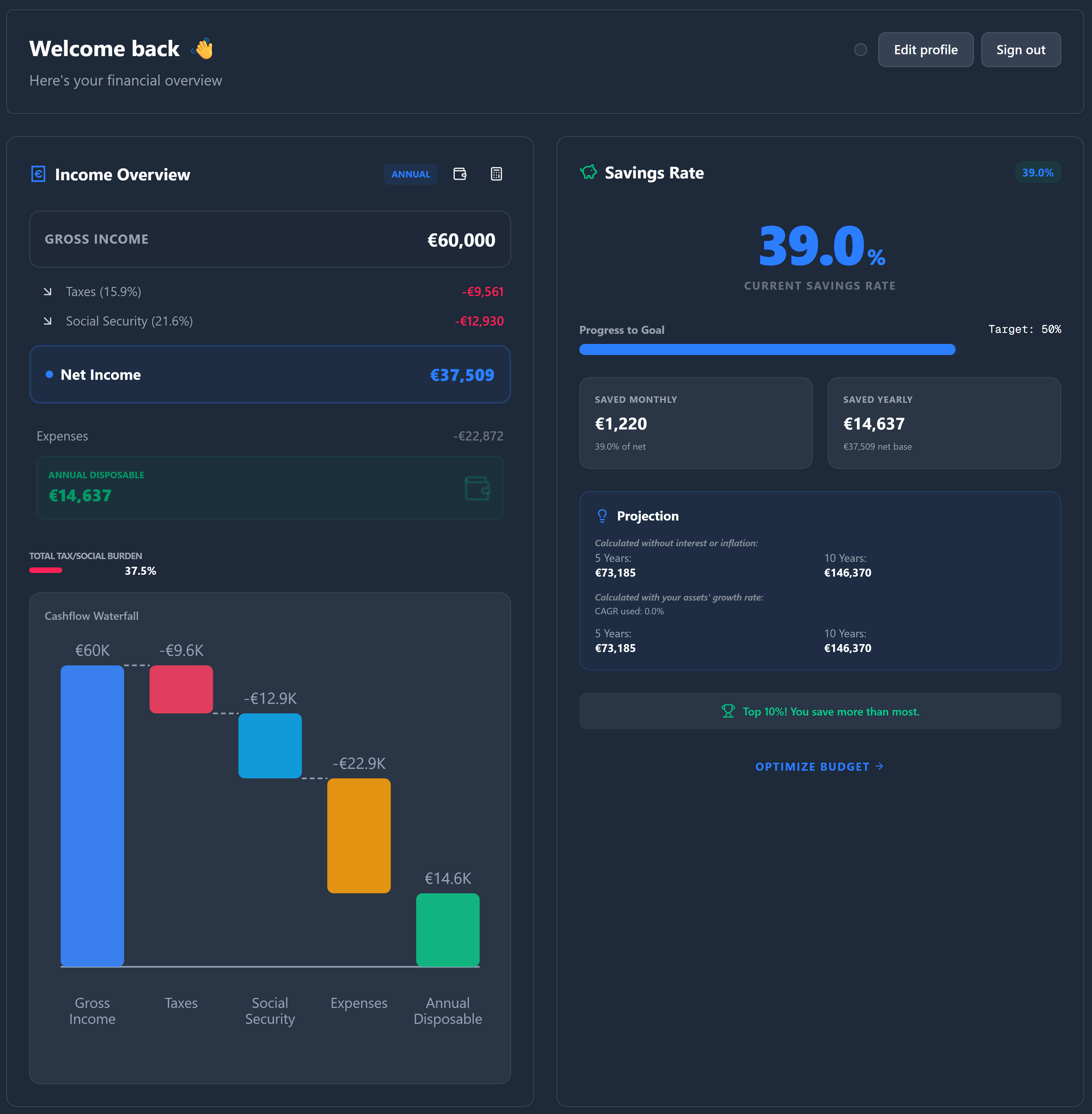 Verstehe endlich, wo dein Geld bleibt. Unser neues IncomeOverview Widget visualisiert den Weg vom Brutto zum verfügbaren Einkommen.